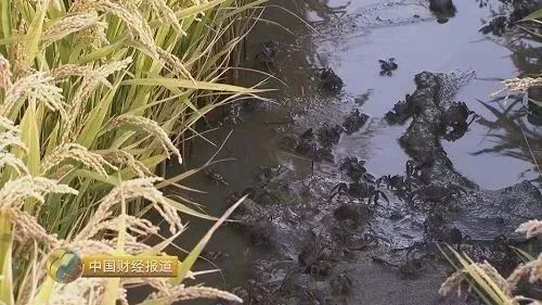 辽宁盘锦金色的水稻,这还只是当地农民收入的来源之一,真正让他们赚钱的是金色稻穗之下,黑黑的稻田蟹,蟹稻共生,生态农业,农民收入来源交叉升级。